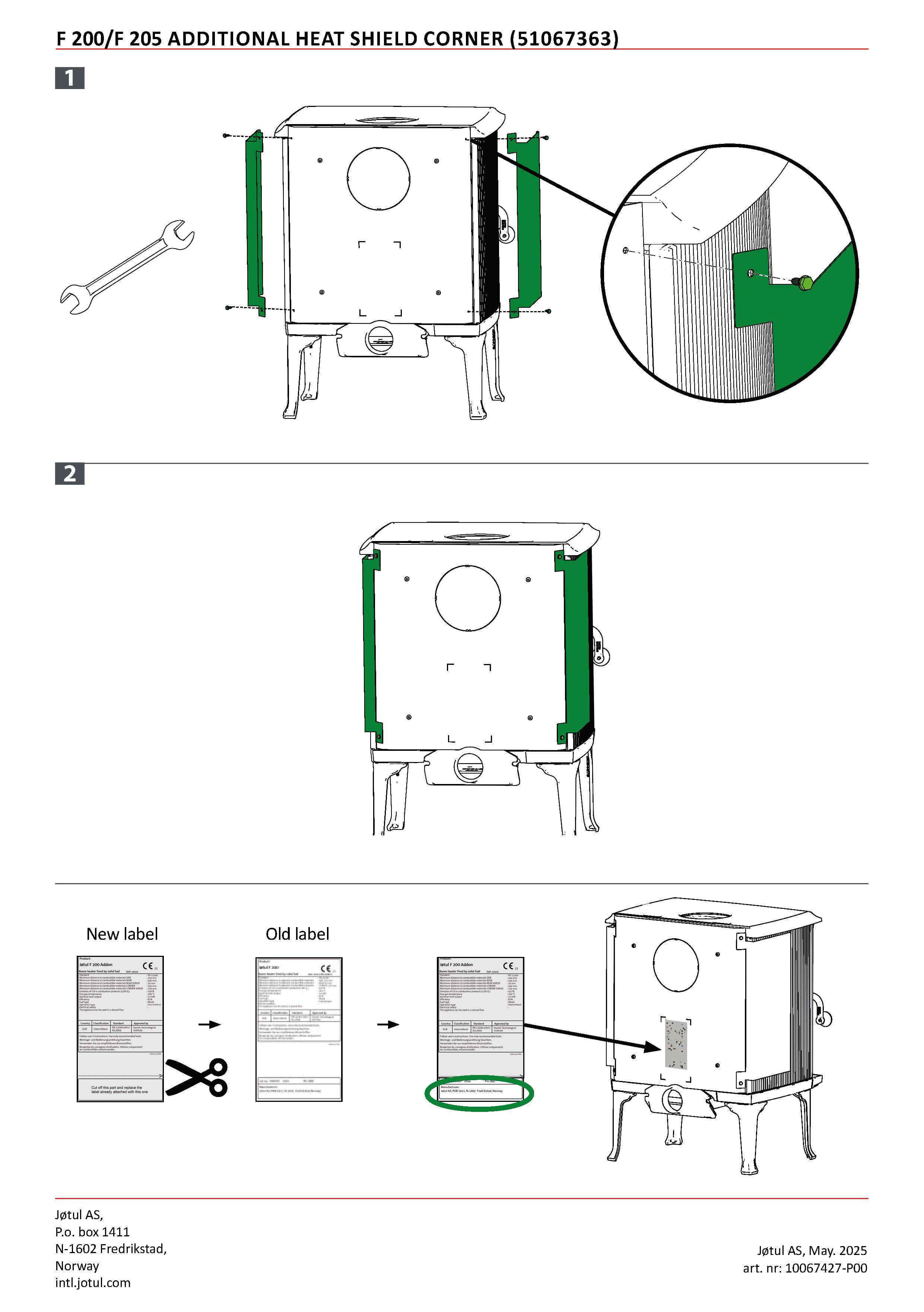 ✅ Nieuwe productiemodellen, Jøtul F 200 V2 / F 205 V2, zijn uitgerust met een bijgewerkt hitteschild en nieuwe afstanden tot brandbare wanden.